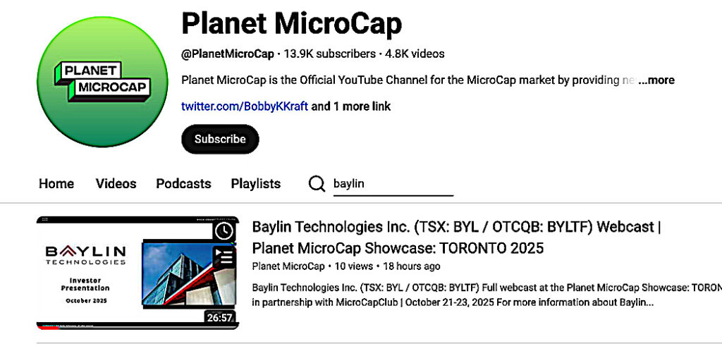 Baylin Technologies Inc. (TSX: BYL / OTCQB: BYLTF) Webcast | Planet MicroCap Showcase: TORONTO 2025