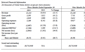 - Adjusted EBITDA in Q3 2014 was $(1.4) million, an improvement of $1.2 million from Q2 2014 adjusted EBITDA of $(2.6) million.